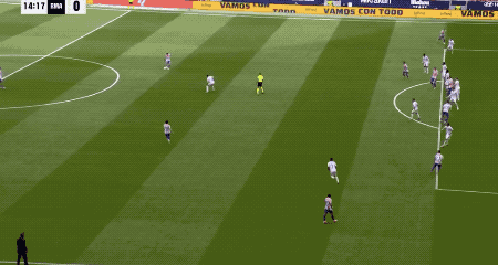 下半场踢了5分钟,皇马遇到了麻烦,阿尔瓦雷斯开出战术角球,冈萨雷斯抢点,居莱尔解围落地时,蹬踏了冈萨雷斯的面部,裁判判罚点球。阿尔瓦雷斯操刀,一蹴而就,打进最近2场的第4球。