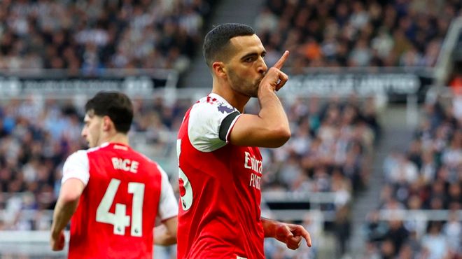 第34分钟,纽卡斯尔以其人之道还其人之身,利用战术角球,托纳利传中,沃尔特马德力压加布里埃尔,头槌破门。